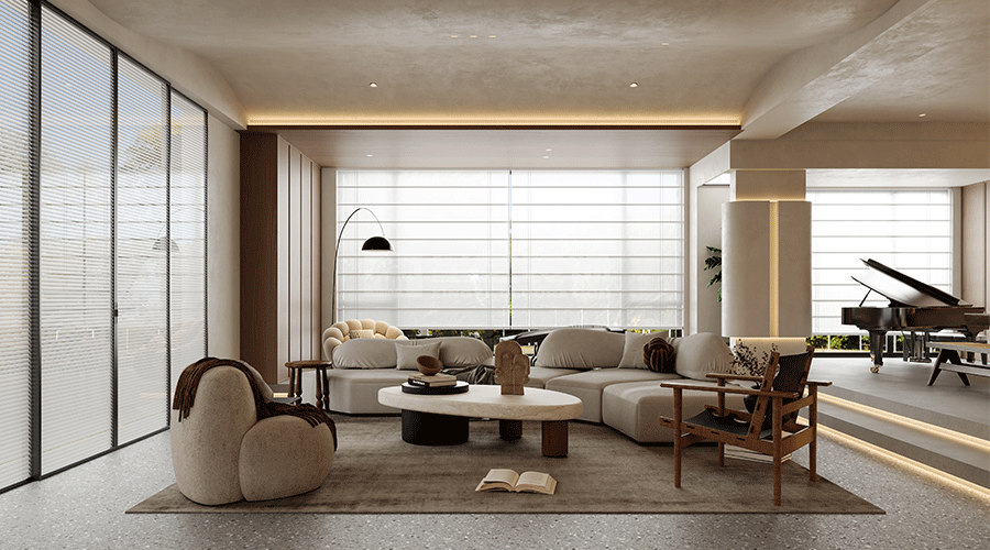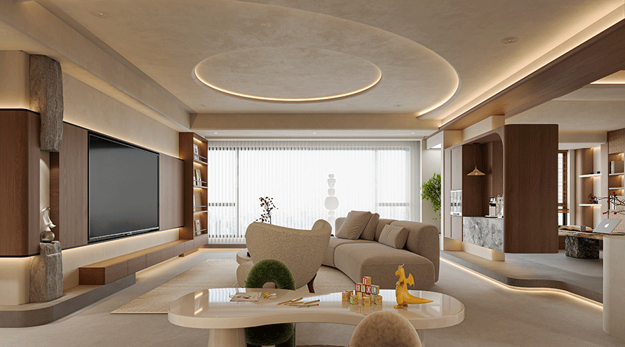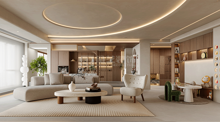 以純粹的形體拉開(kāi)故事序幕,客餐廳不故作聲勢、不矯揉造作,以功能為主導編織空間故事。塊面的穿插、立體的線(xiàn)條豐富空間體態(tài),以結構的骨感勾勒其體魄,溫潤的材質(zhì)與色調把控空間語(yǔ)氣,剛柔并濟下的空間故事展開(kāi)一幕待人緩緩而入的松弛與雅致。