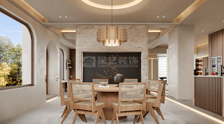 各個(gè)間風(fēng)格并致卻也各有千秋,人物的需求與喜好注入當下空間,藤編、木質(zhì)、夯土等自然元素采納應用于不同空間,經(jīng)過(guò)時(shí)間的淬煉、手法的再造以全新面貌出現在我們的生活之中,時(shí)間賦予自然經(jīng)久的魅力,事物以歷久彌新的姿態(tài)傳遞著(zhù)人物與故事的源遠流長(cháng)、禪意不言自明。